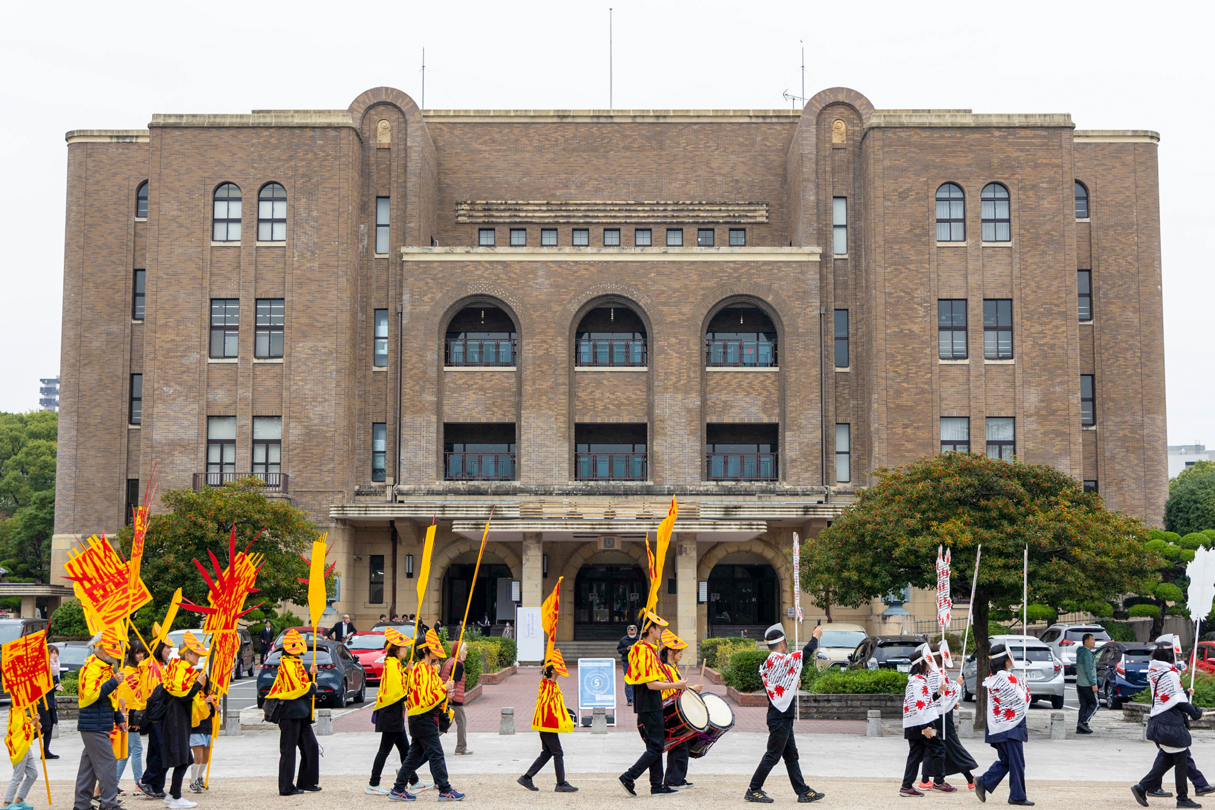 2025年11月には、三部作完結編として「未来の鶴舞」をテーマにしたパレード「METAMORPHOSIS Ⅲ WHERE CRANES DANCE」を開催しました。完結編にふさわしく、100人を超す参加者が集まり、マスキャンプで作られた衣装を身に着け、鶴舞公園内をパレードしました。